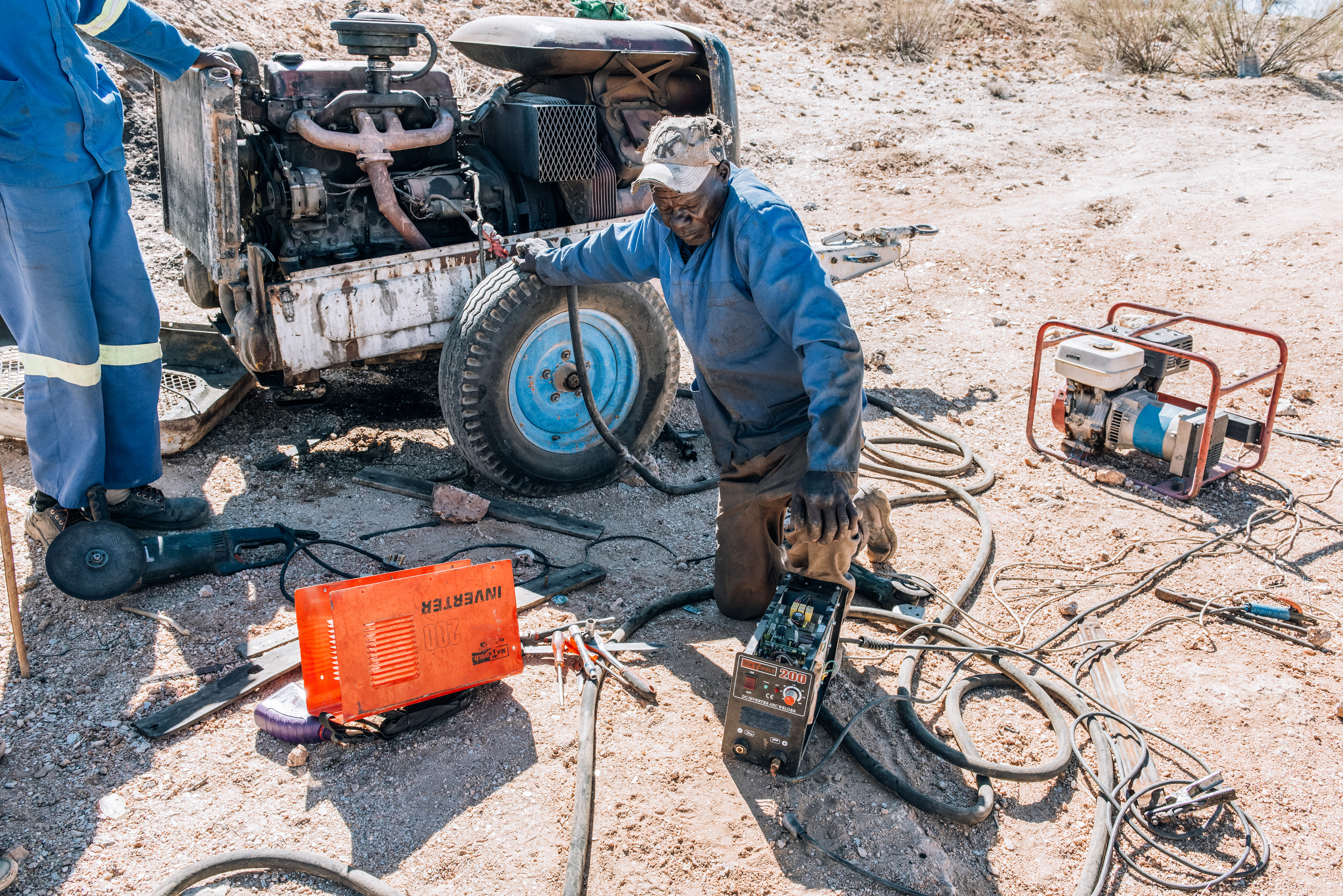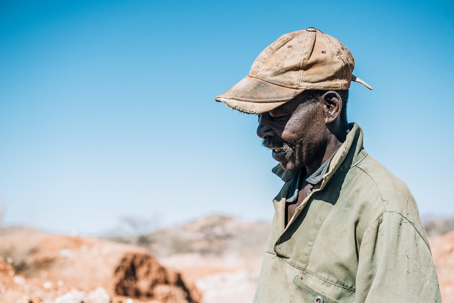I was commissioned by the GIZ of Namibia to document the small scale gem mining on Farm Neu Schwaben in Namibia where a group of miners armed with basic tool break rock to find the gemstones buried deep below this is back breaking work and often without any success.